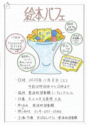 新しい絵本に出合いたい人、好きな絵本の感想を交換したい人など、どなたでもお気軽にご参加くださ