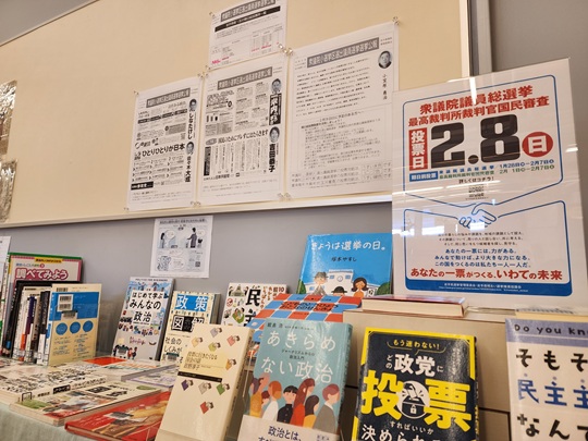 投票前に知っておきたい情報や「選挙公報」、選挙に関する資料を展示しています。投票前にぜひお立ち寄りください。
