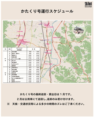 ※1月31日は移動図書館車での本の貸出は行いませんのでお気を付けください。
